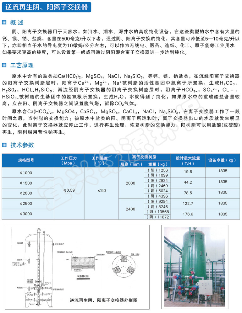 逆流再生阴、阳离子交换器